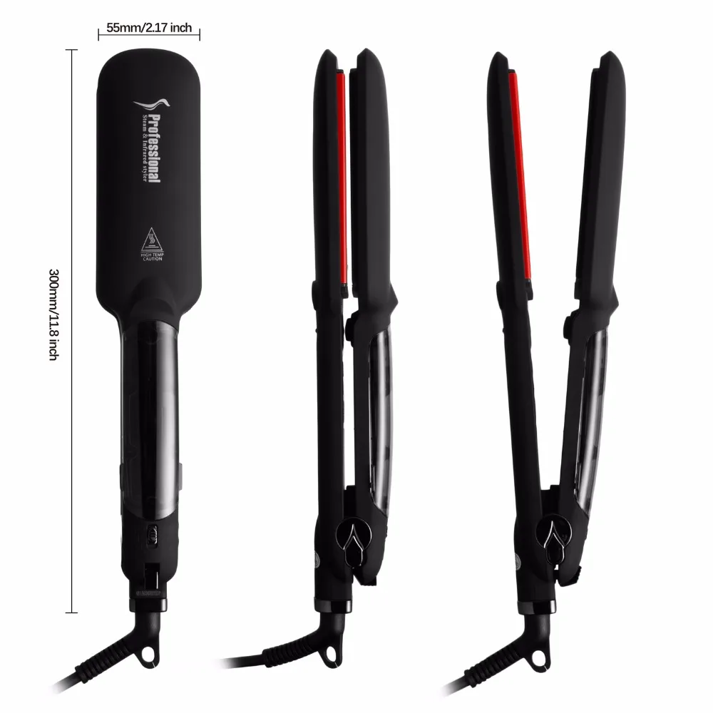 RUCHA Dual Voltage Infrared Steam Hair Straightener 2 Inches Wide Plate Hair Salon Steam Styler Cer