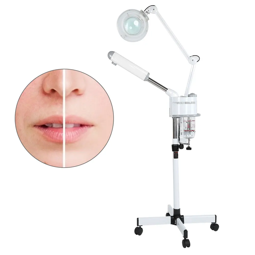 HIGH QUALITY 2-in-1 Salon Use Ozone Hot Mist Face Steamer with Cold Light 5X Magnifying Care Tools