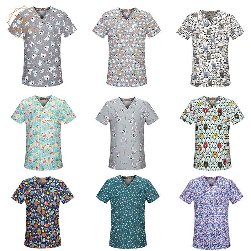 women medical scrub clothes Surgical Medical Uniforms Hospital Nurse Scrub Tops Beauty salon Dentis